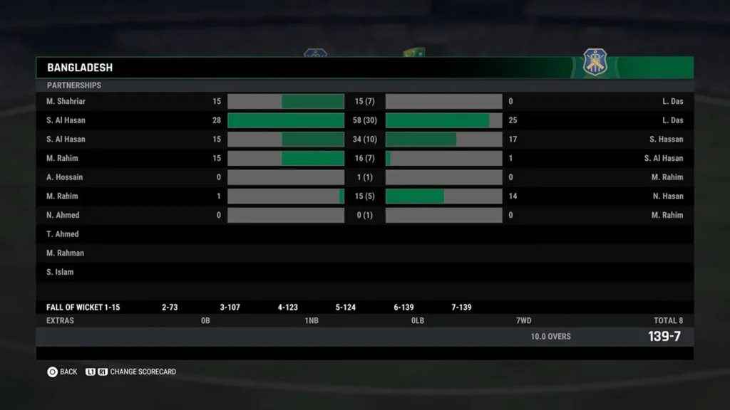 Bangladesh Innings (139 runs for 7 wickets in 10.0 overs)