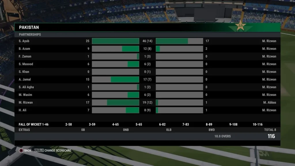 Pakistan Innings (116 runs for 10 wickets in 10.0 overs)