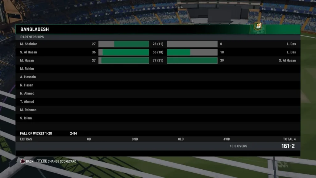 Bangladesh Innings (161 runs for 2 wickets in 10.0 overs)