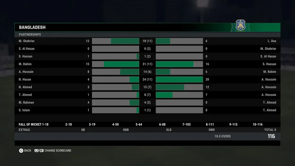Bangladesh Innings (116 runs for 10 wickets in 10.0 overs)