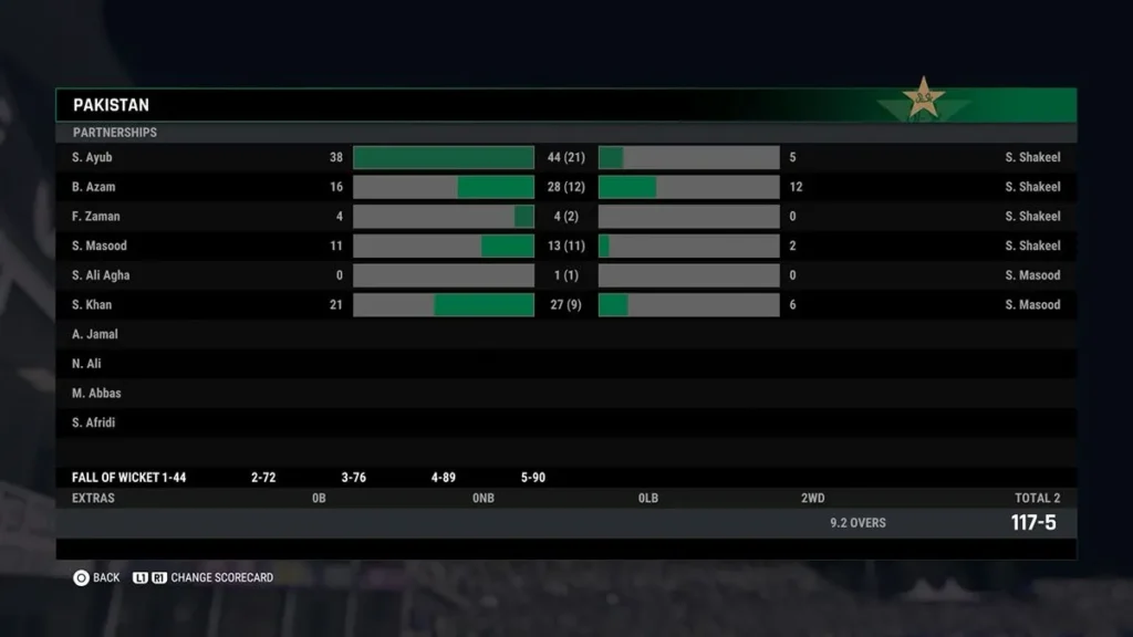 Pakistan Innings (117 runs for 5 wickets in 9.2 overs)