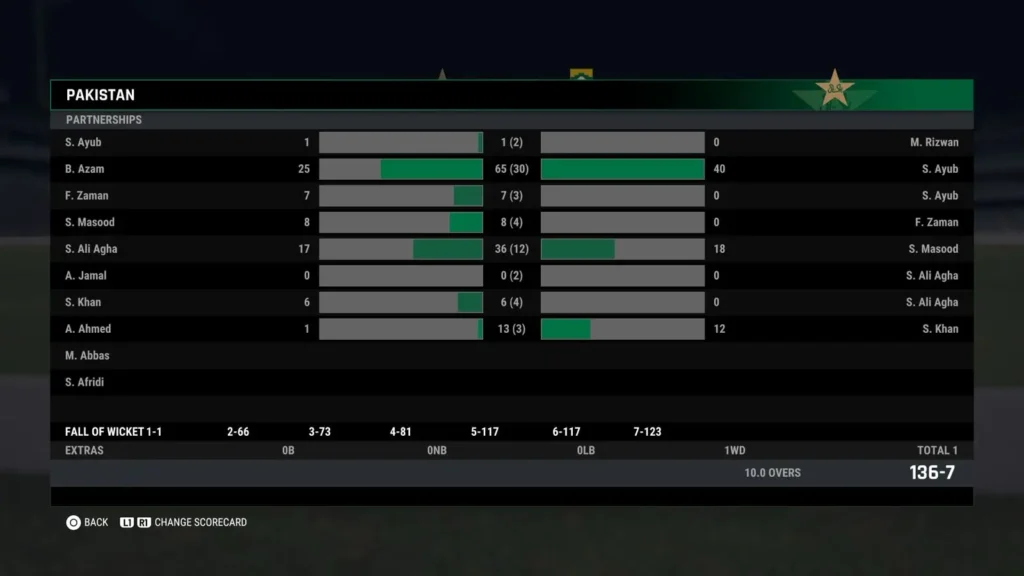 Pakistan Innings (136 runs for 7 wickets in 10.0 overs)