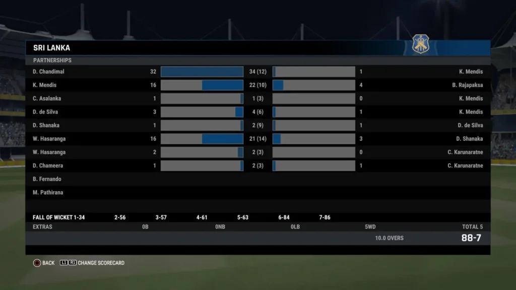 Sri Lanka’s innings struggled for fluency, with only Dinesh Chandimal (32 off 10) and Kusal Mendis (18 off 11) showing brief resistance. Pakistan’s bowlers, led by Shadab Khan (2/7) and Salman Ali Agha (2/8), kept the pressure on throughout, restricting the Sri Lanka to a modest total of 88/7.
